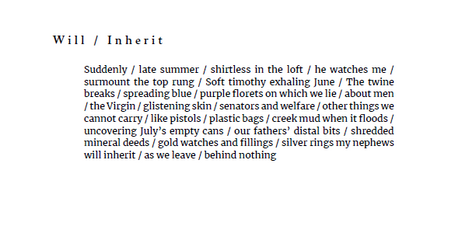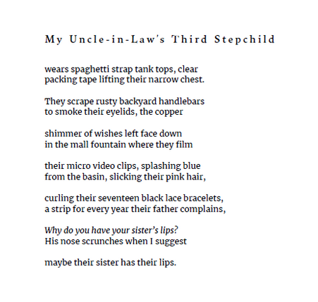 “A great chapbook drills deep, yielding such vibrant detail that we cannot help but inhabit the world built before us. That’s the case of the bracing, strangely beautiful Dead Uncles, which proposes a reality (and sur-reality) of a sprawling, intergenerational family whose bonds are inflected by sexual transgression. One dead uncle casts a spell for killing barn mice; another keeps his hold on local office thanks to votes tallied from the ‘Cemetery Precinct.’ Material that could seem grim in another poet’s hands is set a-glimmer here by formal dexterity, bold humor, bright images, and musicality of phrasing.”